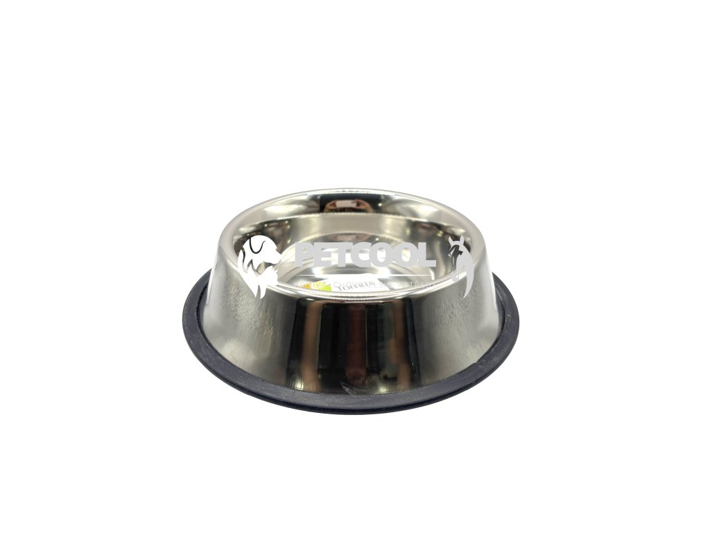 Nerezová miska s protiskluzovou gumou po obvodu misky. Guma je snímatelná, když je potřeba misku umýt nebo dát do myčky na nádobí. Nerezová miska má dlouhou životnost a snadno se udržuje.