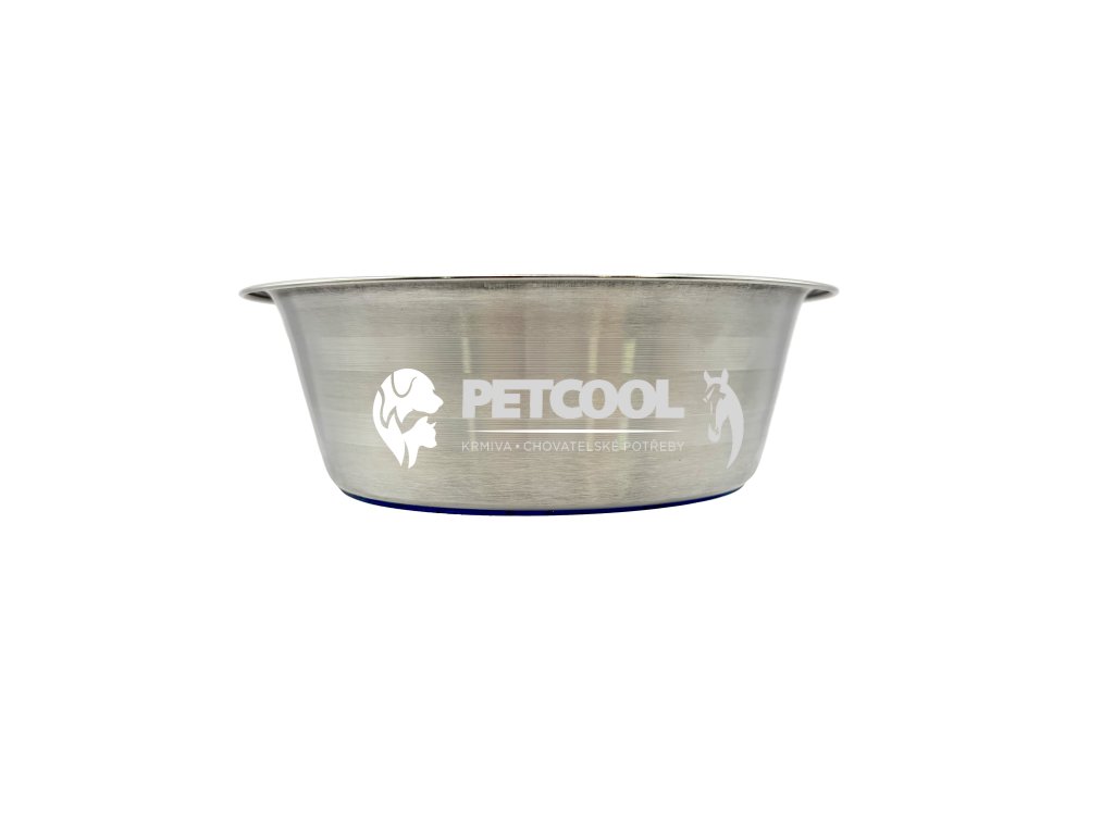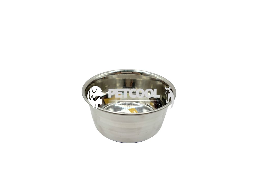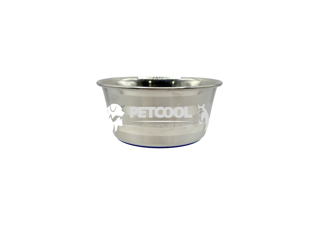 Nerezová miska zdobená gravírovanými pruhy s protiskluzovým silikonem po celém dnu misky. Nerezová miska má dlouhou životnost a snadno se udržuje.
