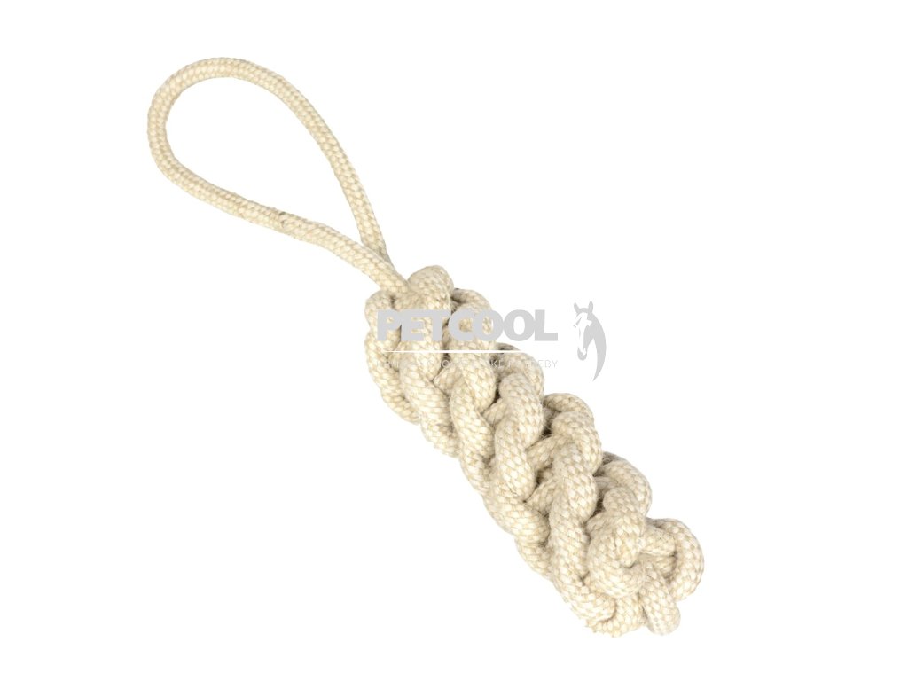 Pešek spletený z bavlněných a jutových vláken. Pešek má oko, za které se pohodlně hází do dálky. Hračka je určena k přetahování a aportování.
