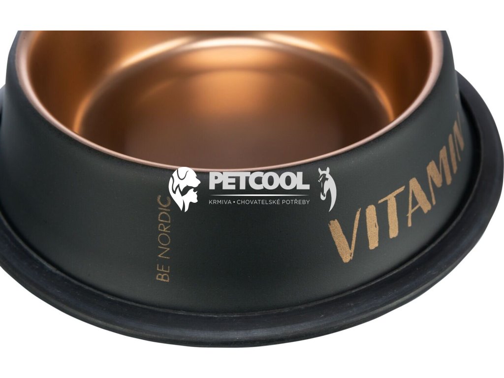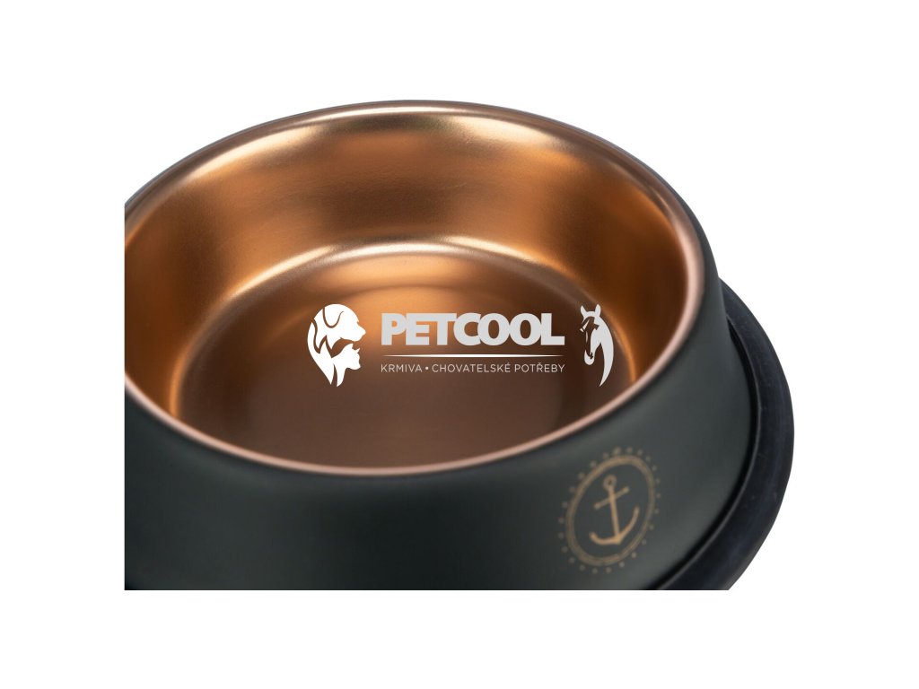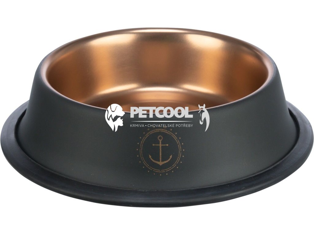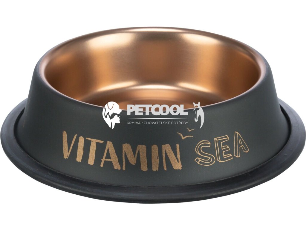 Nerezová miska TRIXIE "BE NORDIC" která je vhodná jak na pití tak i na krmení. Nerezová miska s povrchovou úpravou z řady "BE NORDIC", v práškové černé a bronzové barvě. S nápisem "VITAMIN SEA" a symbolem námořní kotvy.