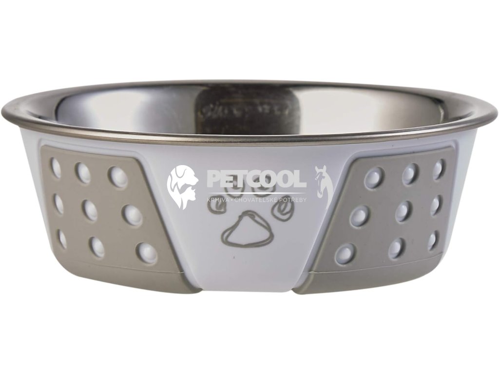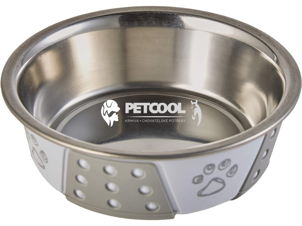 Nerezová miska se silikonovým potahem Trixie. Jednoduchá miska z nerezu s praktickým silikonovým pláštěm s motivem tlapky. Miska má protiskluzové dno, aby byla stabilní i na kluzké podlaze (při krmení se posouvá a zvíře se může v klidu najíst). Miska je hygienická a snadno omyvatelná.