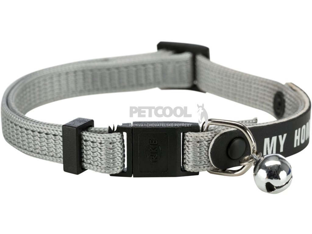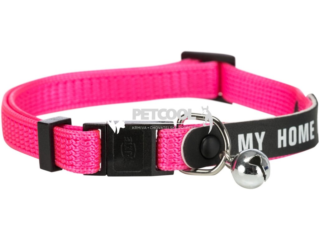 Nylonový obojek TRIXIE MY HOME pro kočky. S bezpečnostní přezkou, kdyby se kočka někde zachytla. Obojek má na sobě adresář s nápisem "my home", který je na cvoček a lze tam napsat kde kočička bydlí, nebo kontakt na majitele.