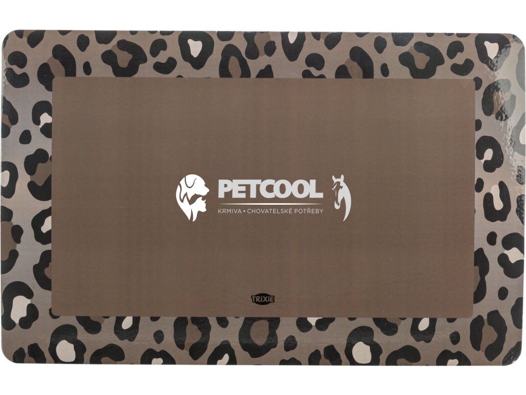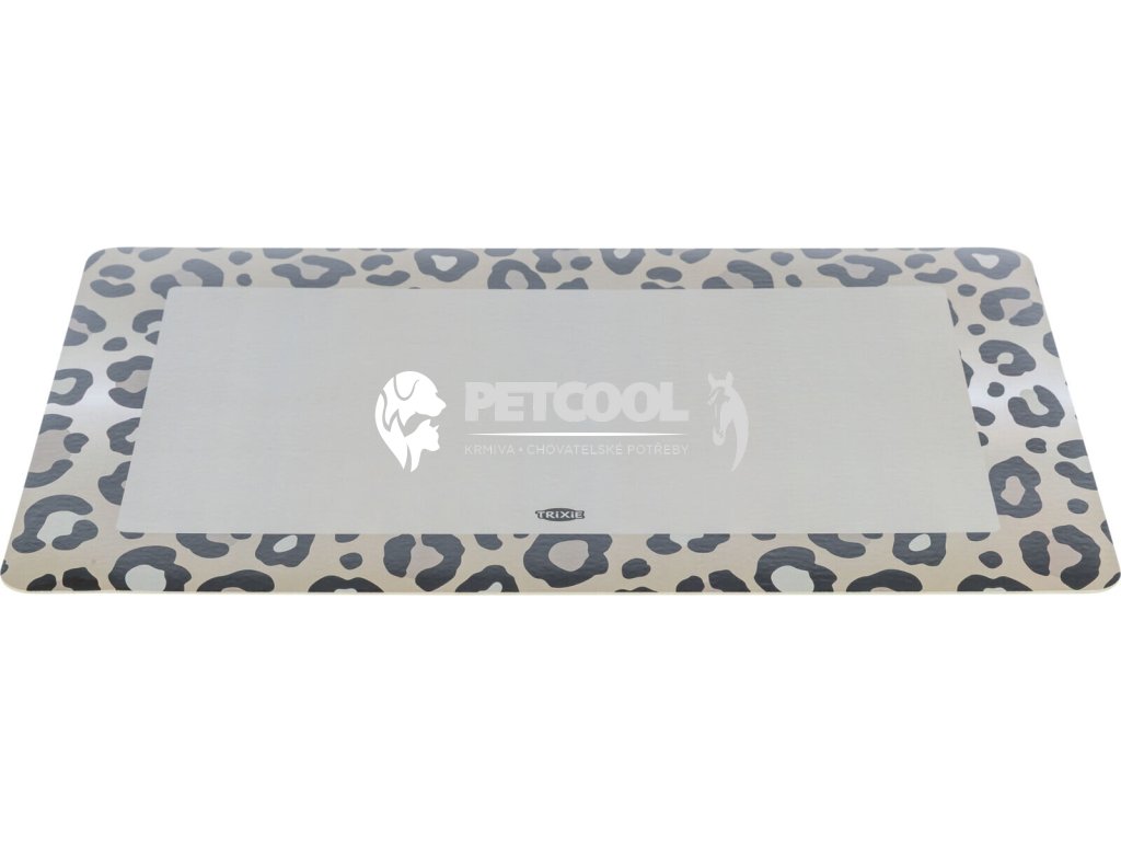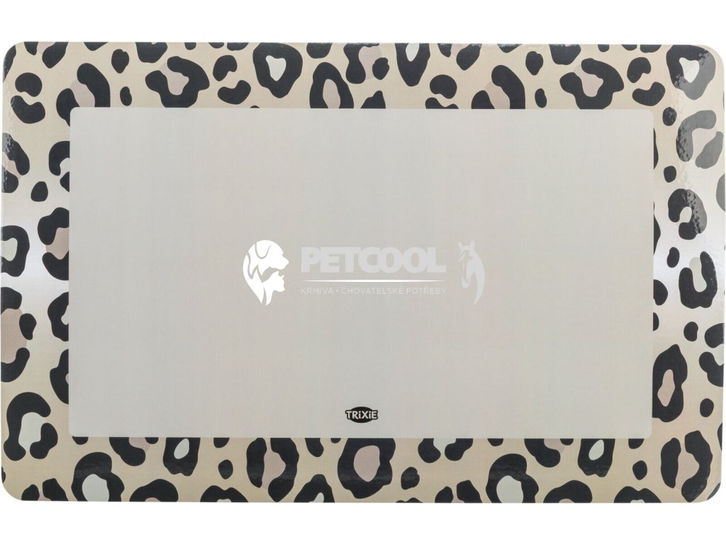Měkké gumové prostírání TRIXIE pod misky. S potiskem leopardí imitace srsti. Podložka pod misky pro psy představuje ideální řešení pro udržení čistoty podlahy i během krmení a napájení kočky. Podložka je neklouzavá.