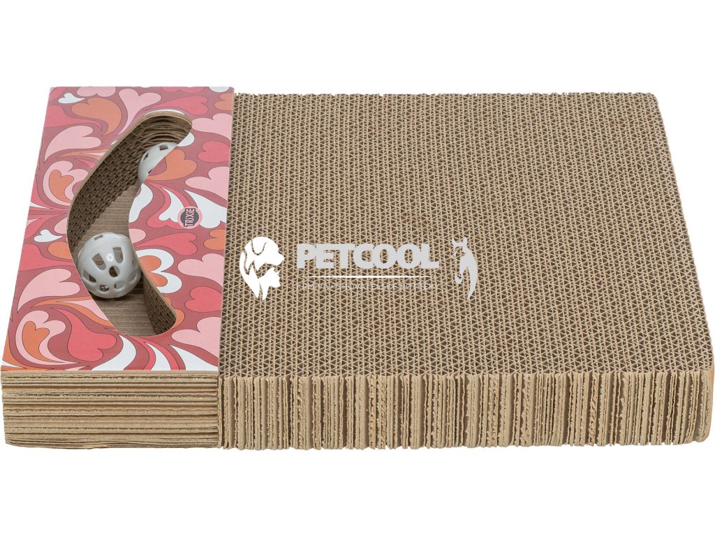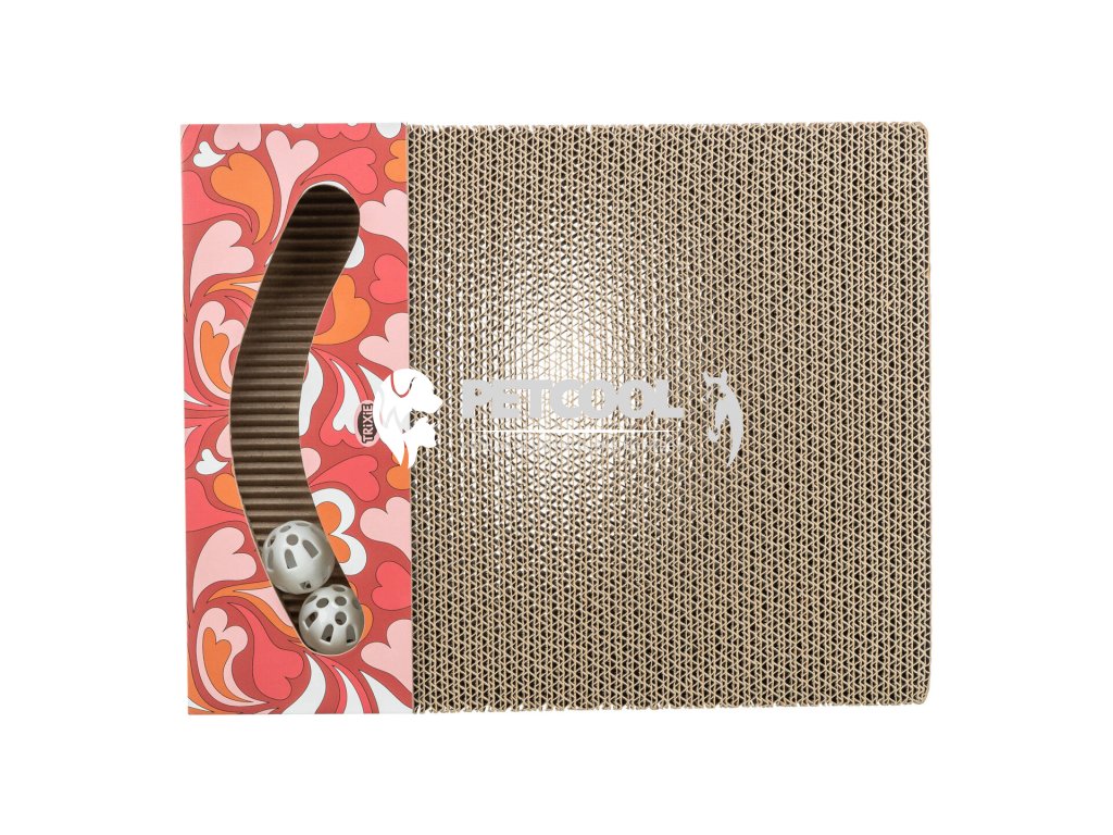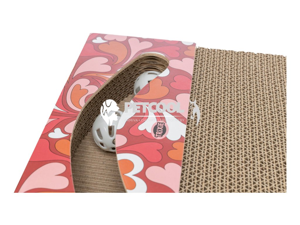 Kartonové škrabadlo TRIXIE VALENTINE se vzorem srdíček v limitované valentýnské edici. S plastovými míčky s integrovanou rolničkou a catnipem.