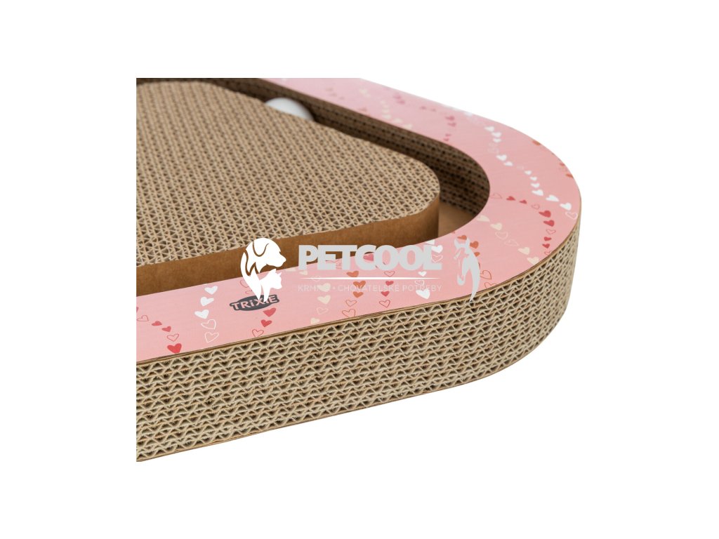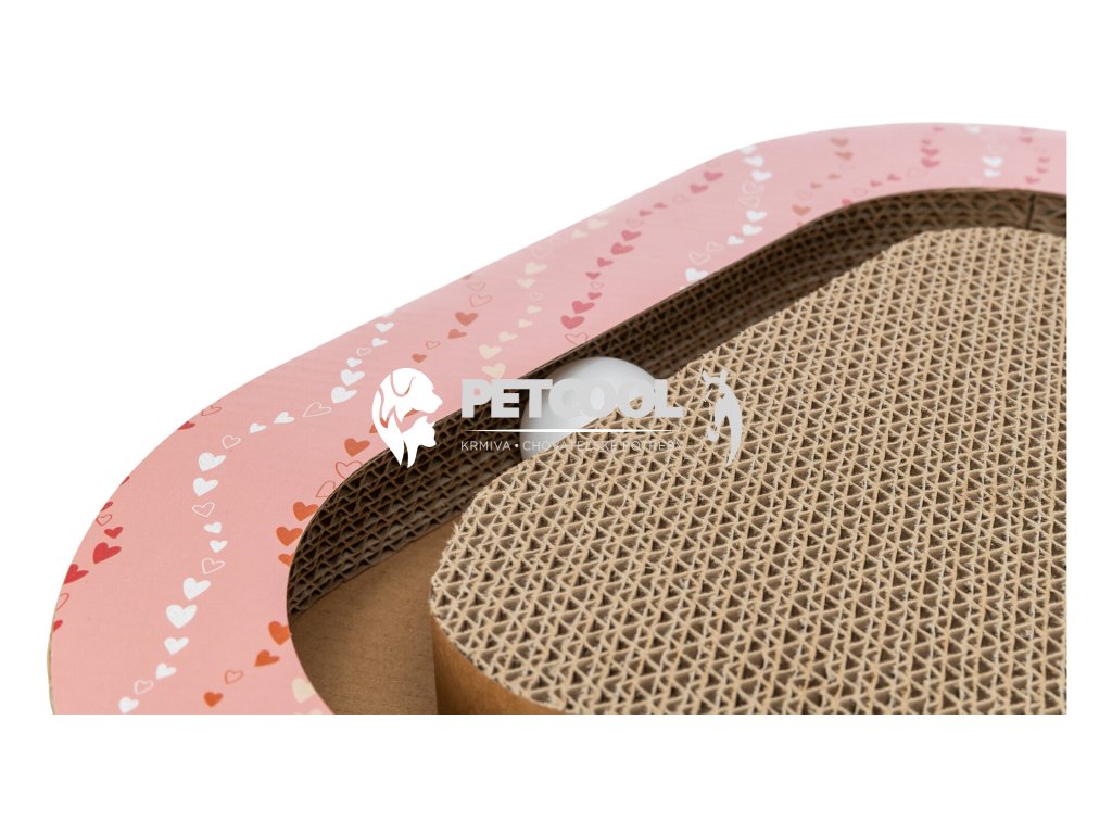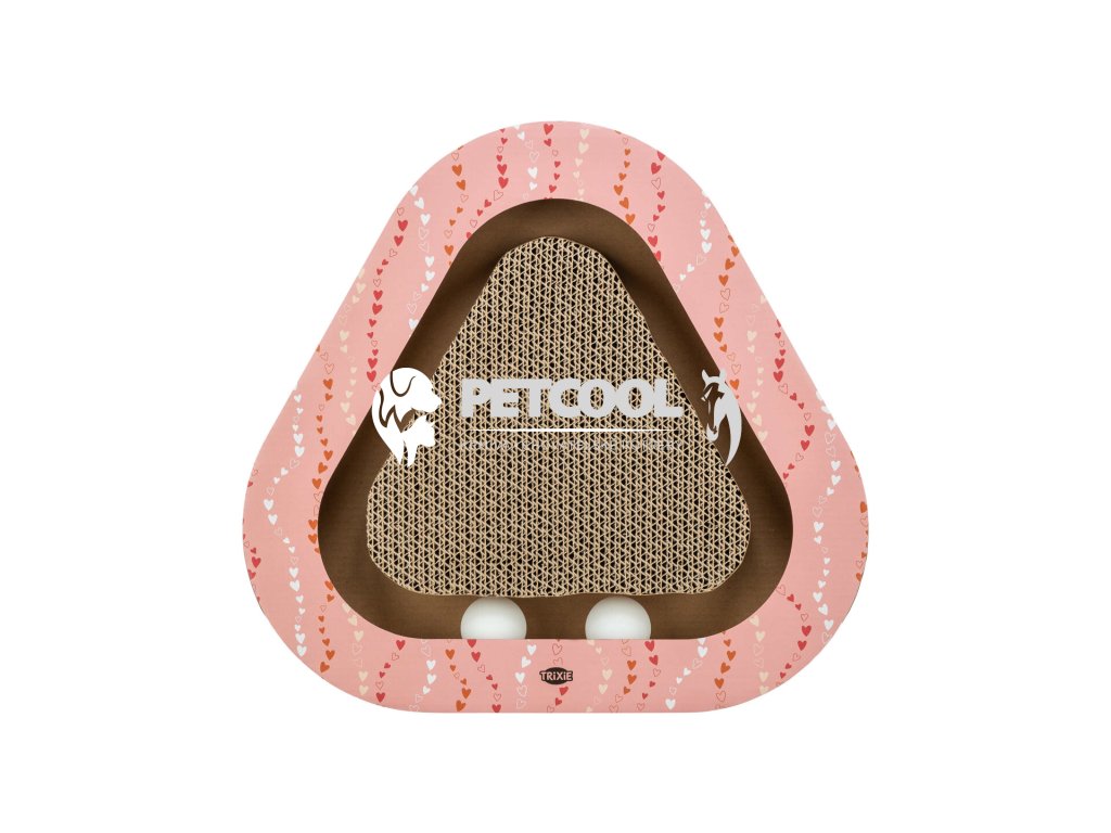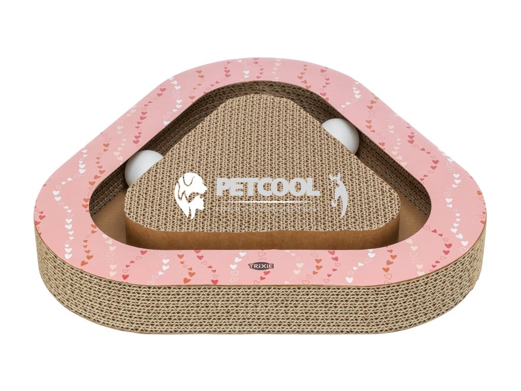 Kartonové škrabadlo TRIXIE VALENTINE TRIANGL se vzorem srdíček v limitované valentýnské edici. S plastovými míčky s integrovanou rolničkou a catnipem.