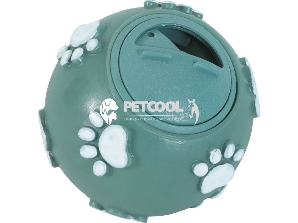 Zábavný míček na pamlsky pro králíky, jako aktivní krmení. Při kutálení vypadávají pamlsky ven z míčku. Povrch míčku je pogumovaný, aby neklouzal po tlapkách. A navíc má také vystouplé motivy tlapek pro snadné kutálení míčku. Nastavitelný otvor podle velikosti pamlsků.