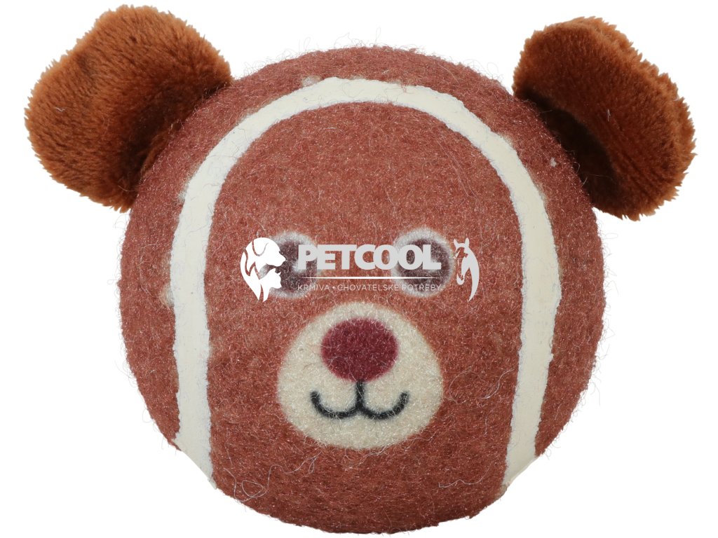 Tenisový pískací míček v podobě hlavy medvěda s ušima.