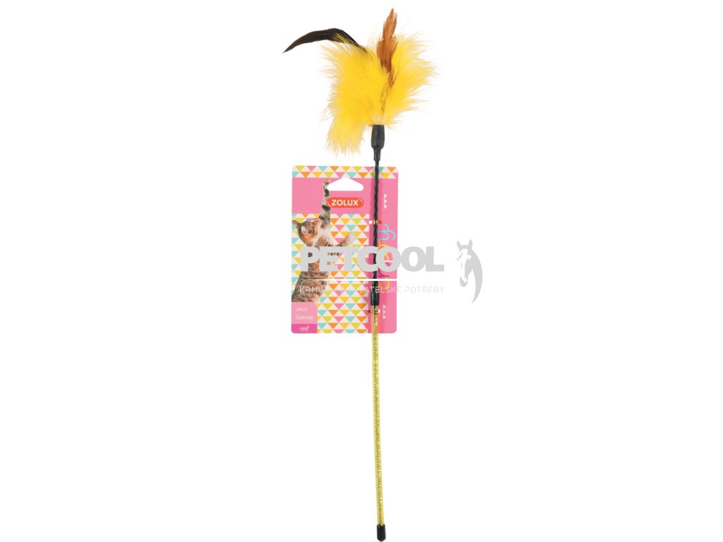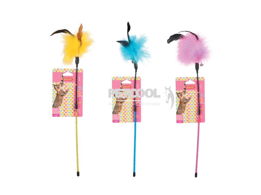 Udice ZOLUX FEATHER DUSTER chmýří a pírka umístěné na třpytivé plastové tyčce. Hračka na tyčce, svým pohybem láká kočku ke hře.