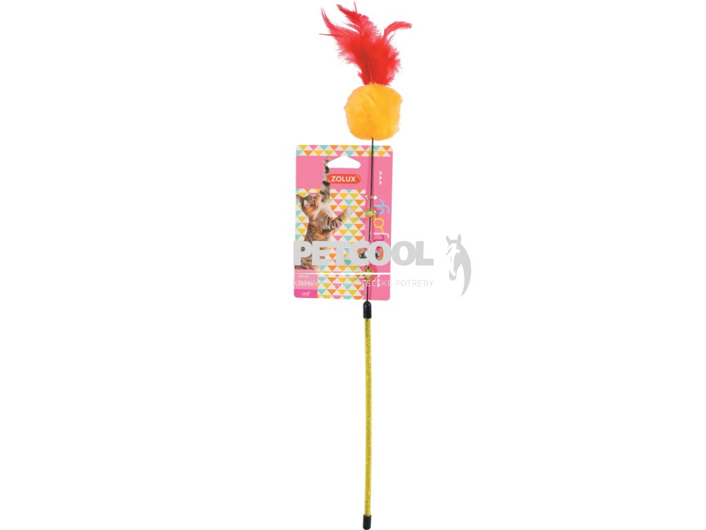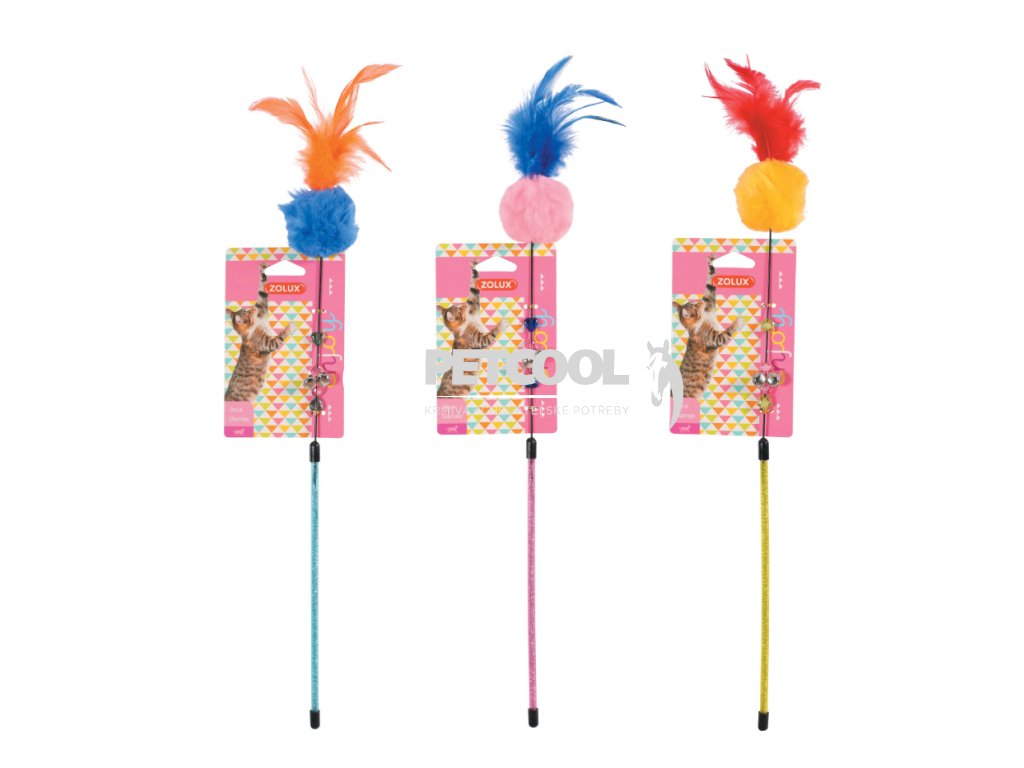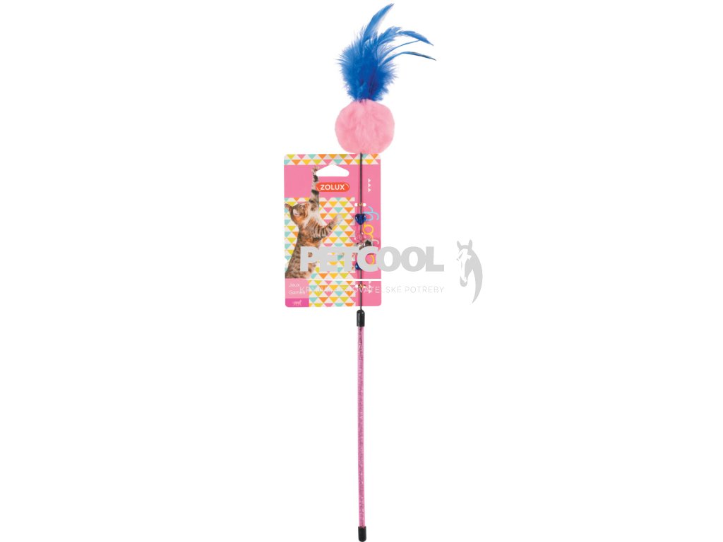 Udice ZOLUX POMPOM FISHING plyšová barevná kulička a pírka umístěné na plastové tyčce. Hračka na tyčce, svým pohybem láká kočku ke hře.